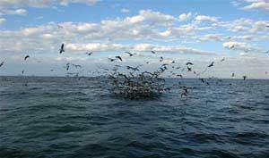 Bait fish are abundant when you find them. Look for flocks of birds over the water and get your boat close enough to